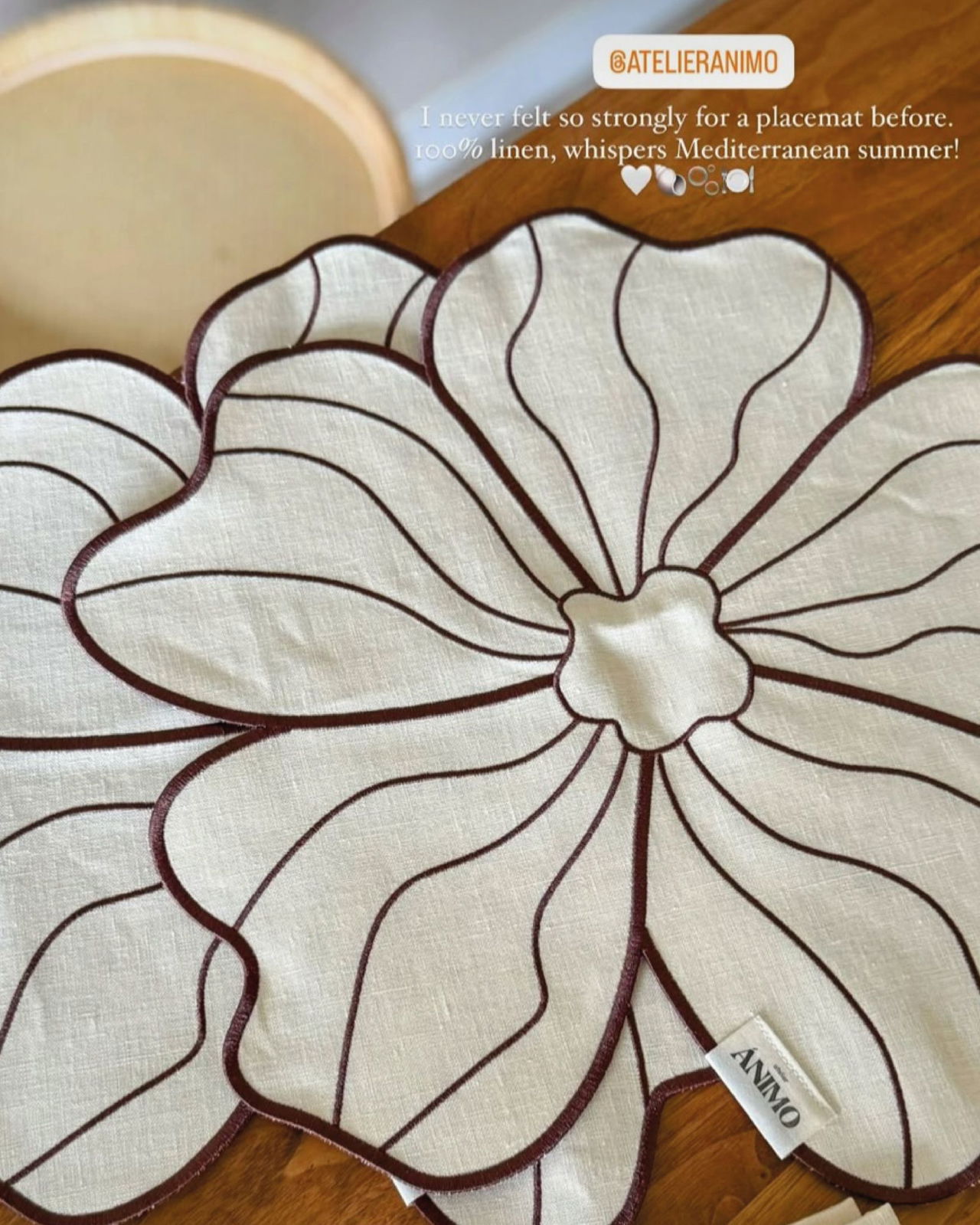 At Atelier Ánimo, we believe the most meaningful conversations begin at the table. More than just table linen, our linen placemats and napkins help you set the tone. Thoughtfully crafted from natural, long-lasting materials, they bring timeless design and a conscious touch to your table.